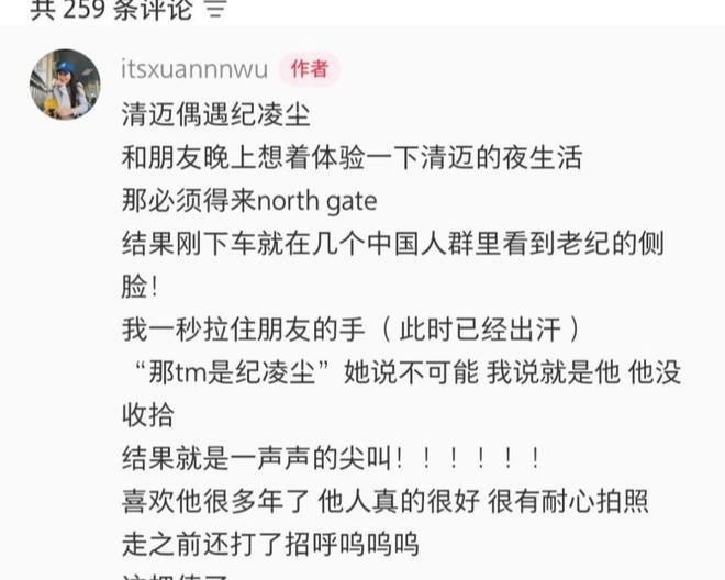 纪凌尘与女友云希现身清迈街头,被网友偶遇并合影。