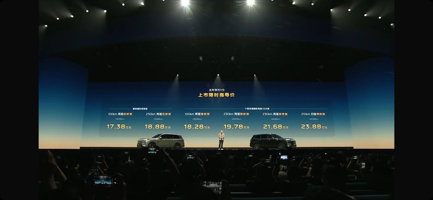 9月17日,吉利银河AI科技大六座旗舰SUV银河M9正式全球上市,新车推出6个版型,限时17.38万元-23.88万元,价格权益一步到位,起步即高配,为2025年大六座SUV市场注入AI时代的全新活力。作为吉利全域AI体系力打造的集大成之作,银河M9不仅是智能安全的集大成者,更以多项AI技术首发上车,重新定义主流大六座SUV的价值标杆。