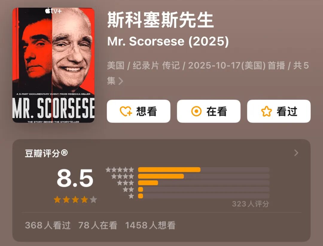 △ 《斯科塞斯先生》目前在豆瓣评分高达8.5分
