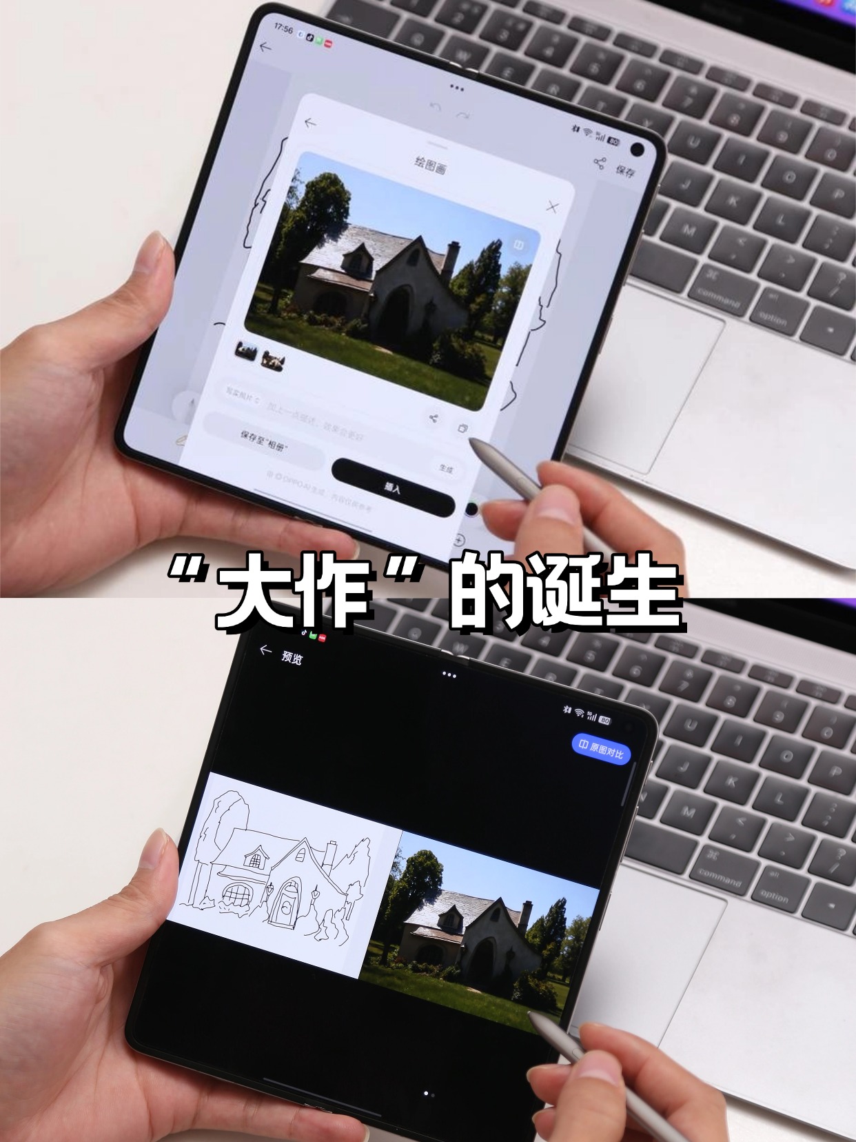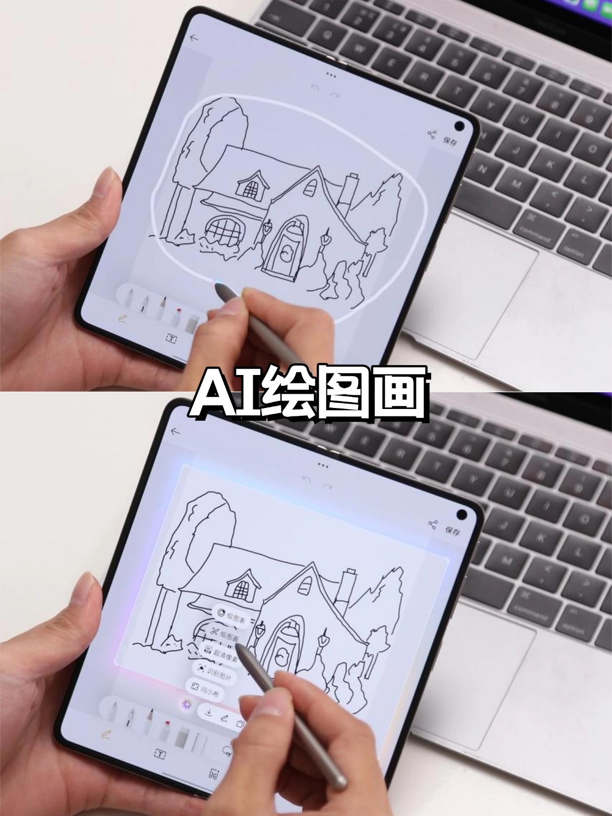 对了配套的AI手写笔也必须安利,在这块几乎看不见折痕的大屏上写字画画太舒服了,而且笔尖一圈一点,AI就能把随便画的草图转成精致的画作,人人都可以是大艺术家~