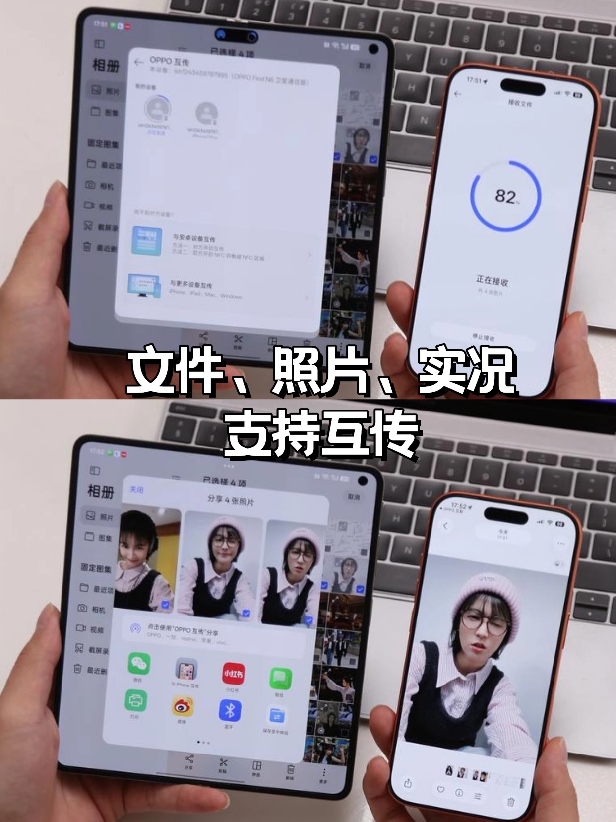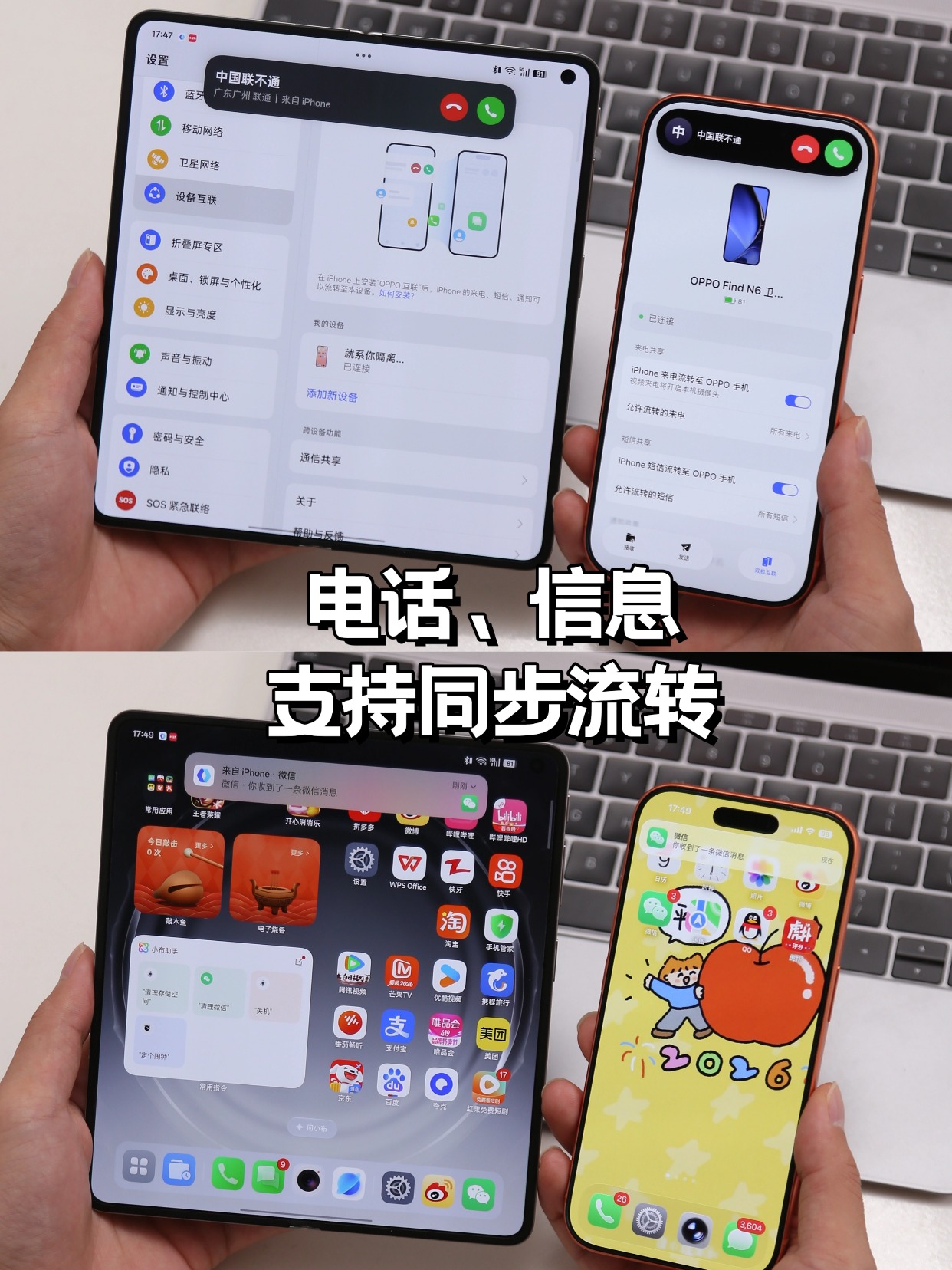就这套组合,iPhone负责日常工作聊天,OPPO Find N6则承包了大屏娱乐、多任务办公,主打一个各司其职而且最方便的是,这两台手机的生态可以互通,iPhone的通知、来电都能同步到OPPO Find N6上,文件、Live照片也能直接互传,甚至连微信都能三端同时在线,重要消息不用担心错过~