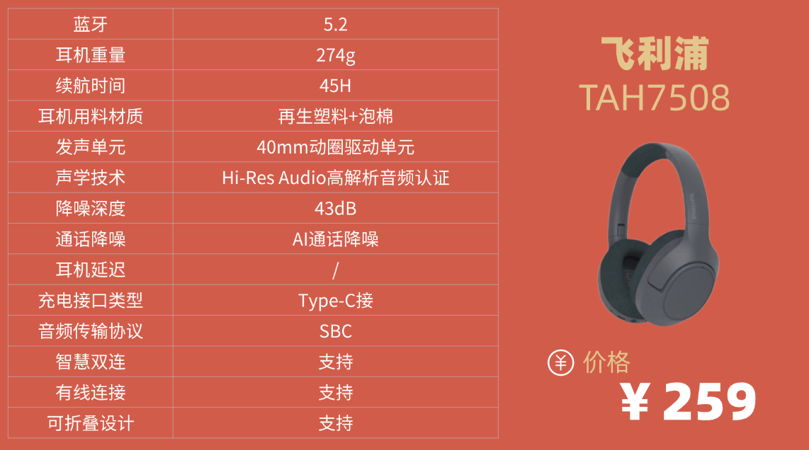 七、飞 利 浦TAH7508头戴式降噪耳机
