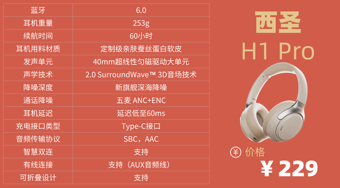 优势①要说当下最能打的头戴式耳机品牌,非西圣莫属。旗下的西圣H1Pro头戴式耳机凭借性价比横扫同价位市场,实力碾压一众竞争对手,即使放在千元级旗舰耳机中,它的音质、降噪和佩戴体验依旧不输阵。无论是权威数码媒体还是资深耳机发烧友,都一致盛赞它为“2025年度百元头戴式耳机性价比天花板”!