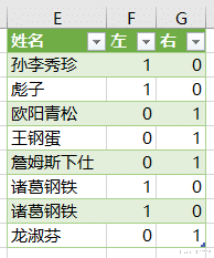 右侧绿色的表格就是两个表的差异,1 表示有,0 表示没有。