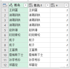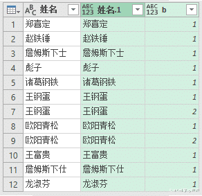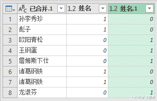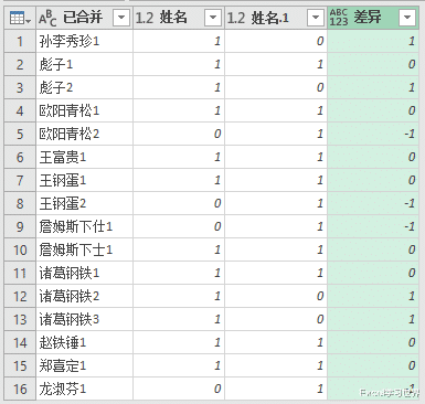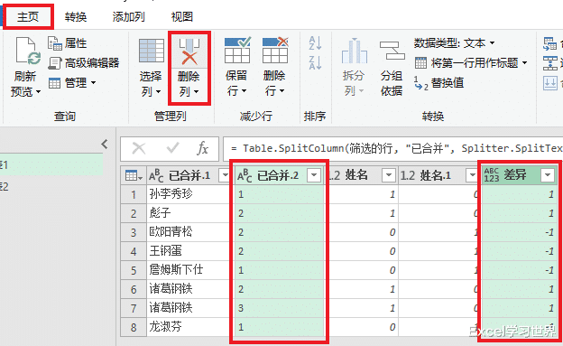 17. 选择任务栏的“添加列”-->“自定义列”--> 将两列姓名相减