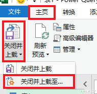 2. 选择任务栏的“主页”-->“关闭并上载”-->“关闭并上载至”