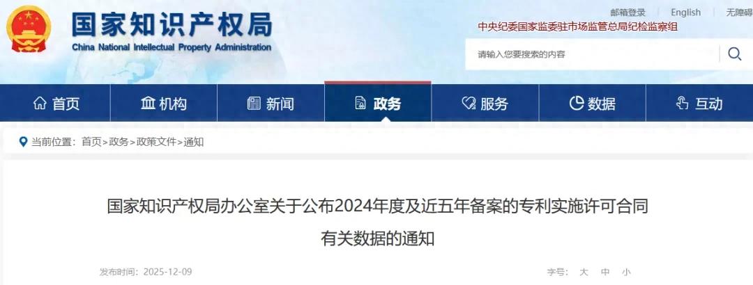 近日,国家知识产权局办公室公布关于2024年度及近五年备案的专利实施许可合同有关数据的通知。