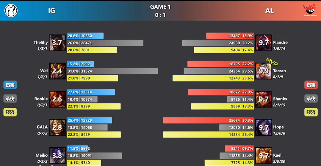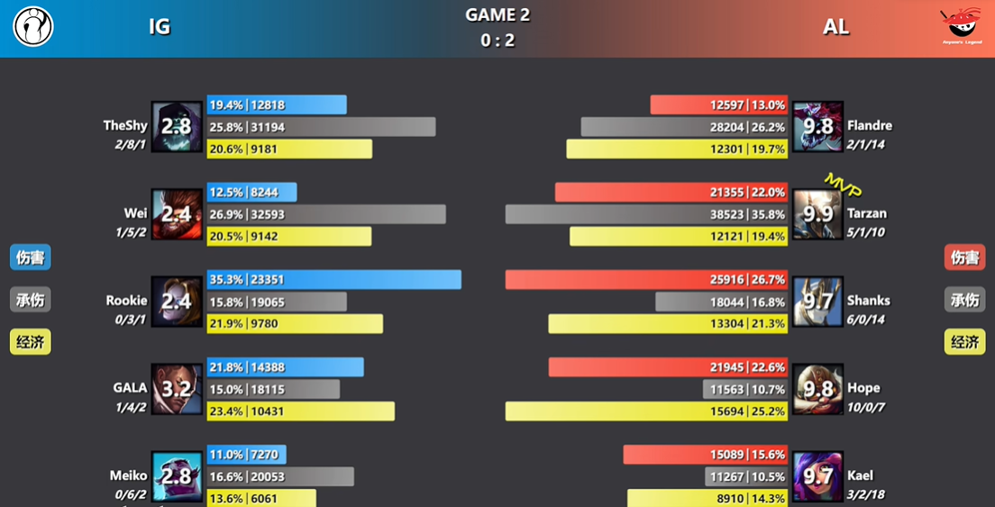 IG核心选手Rookie和Gala则状态低迷。Gala首局0-7的战绩,Rookie多次被单杀,导致IG无法组织有效进攻。