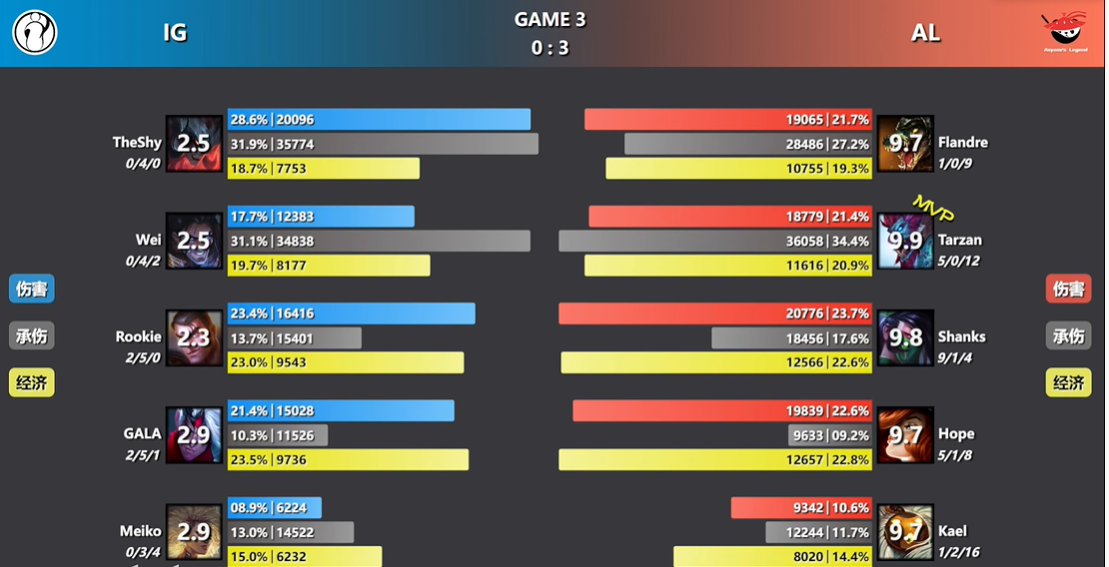 AL刷新本赛季最短BO5纪录,IG只能带着前两赛段积累的55点积分和第三赛段的40点积分,从冒泡赛重新起步。