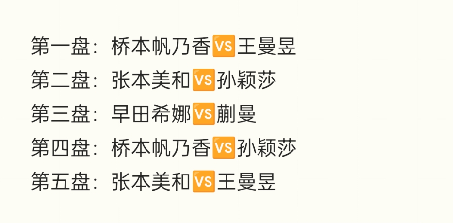 不难看出,日本队是做出了精心的布置,选择让削球手桥本帆乃香出任一单,意图很明显,那就是尽量消耗孙颖莎和王曼昱的体力。