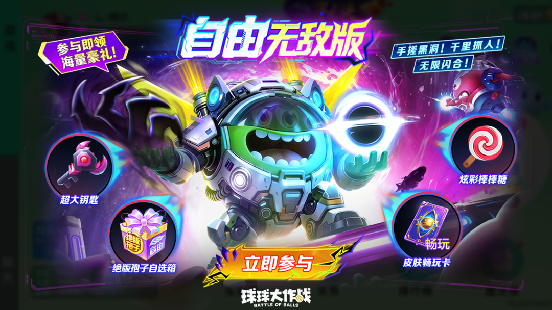 更让人兴奋的是同步上线的“自由无敌版”玩法,这绝对是4月的重头戏!50人同屏竞技,8分钟一局快节奏乱斗,还能无限复活,再也不用担心失误被淘汰了。技能更是五花八门,超级魔爪能千里抓人,暴风吸入直接手搓黑洞,横冲直撞还能极速闪合,35款技能自由组合,每一局的战斗体验都不一样!登录还能领无敌版畅玩卡22张,自己爽玩的同时还能白嫖无敌版孢子自选包和超大钥匙,19号前我就准备扎在这个模式里了。