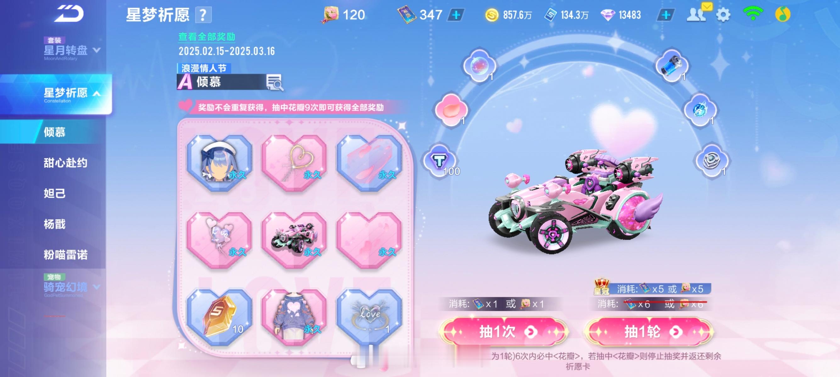 送的120张倾慕A车祈愿卡只抽出了衣服,没能欧车没关系我习惯了,星梦祈愿活动非常好!返了19祈愿卡、3幻生水晶、3宠物电池、4水晶球、6幻境能量 游戏浪漫团圆夜 新年游好运 qq飞车手游 qq飞车手游[超话]