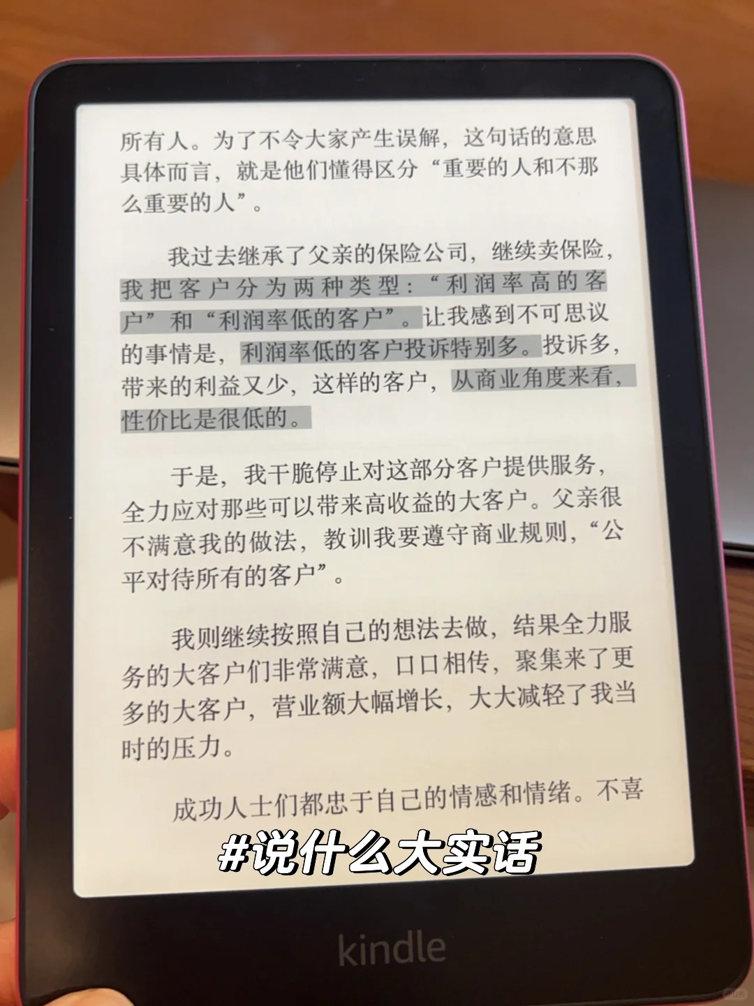 出于好奇,看了《有钱人和你想的不一样》的书。以下的观点即实用又能提升我们对金钱的认知,以及如何成为有钱人的路径,快速看看你的行为是促进还是妨碍你致富: 1️⃣能够变富裕的人是谁? ✖️:目标只看钱。以金钱为标准的人,容易看不到事物的本质。 ✅:目标不是钱,是长期价值。最先抓住事物的本质,而不是坦途眼前的利益,因此可以冷静判断,选择自己最有利的方向。 2️⃣增加收入: ✖️:只靠一份工资 ✅:按时下班,回家做副业,才是致富之路。 副业的收入不是追求“量”,而是要增加多一个渠道。 3️⃣对钱的态度: ✖️:钱没有用,钱不重要(在财富没有自由之前) ✅:理直气壮,我爱财!忠于自身欲望,能成为强烈的动机 4️⃣哪个优先:资本运作/自我投资 看年龄阶段: 2-30+:投入金钱和时间进行自我投资:外语、专业资格证书、研究生MBA、学习新技术,人脉。 “越早增强自己赚钱的实力,越容易取得物质自由。特别是20几岁的时候,比起资本投资,自我投资必须优先考虑” 当时我22岁,人生的第一桶金差不多30w+,就全部投在我自己的香港大学硕士的学费和生活费里面。以前没有想那么多,现在回想起来,这是暂时我做过投资回报最高的一笔投资。无论从经济收入、专业知识能力、眼界、人脉资源、就业机会、财商等等都有很大的提升。 资本运作:30+之后开始更合适 “时间越长,效果越明显。相信复利的利率” 5️⃣单枪匹马/八方支援? ✖️:单枪匹马 ✅:八方支援。人脉越丰富,金钱和事业越到位。富人都是反馈能手,越积极反馈,越贵人支援 6️⃣时间管理: ✅:手写笔记本记录随时翻阅,交谈时的手写记录会显得对对方的尊重。可以把每天时间划为“浪费”“消费”“投资”3部分 7️⃣畅销书/经典书? 不懂流行就不能成功,畅销书也会有很多商业灵感,就跟网红店是一个道理 8️⃣日程表安排: ✖️:总是满满的 ✅:有很多空余 “越忙碌,越是无法赚钱” 9️⃣提前多久到达约定地点 ✖️:3分钟 ✅:30分钟。更多是对信任关系的尊重,以及预防突发事件 🔟个人定位: ✖️:“万金油”涉猎广而不专 ✅:深耕专业领域,有拿的出手的专业领域案例
