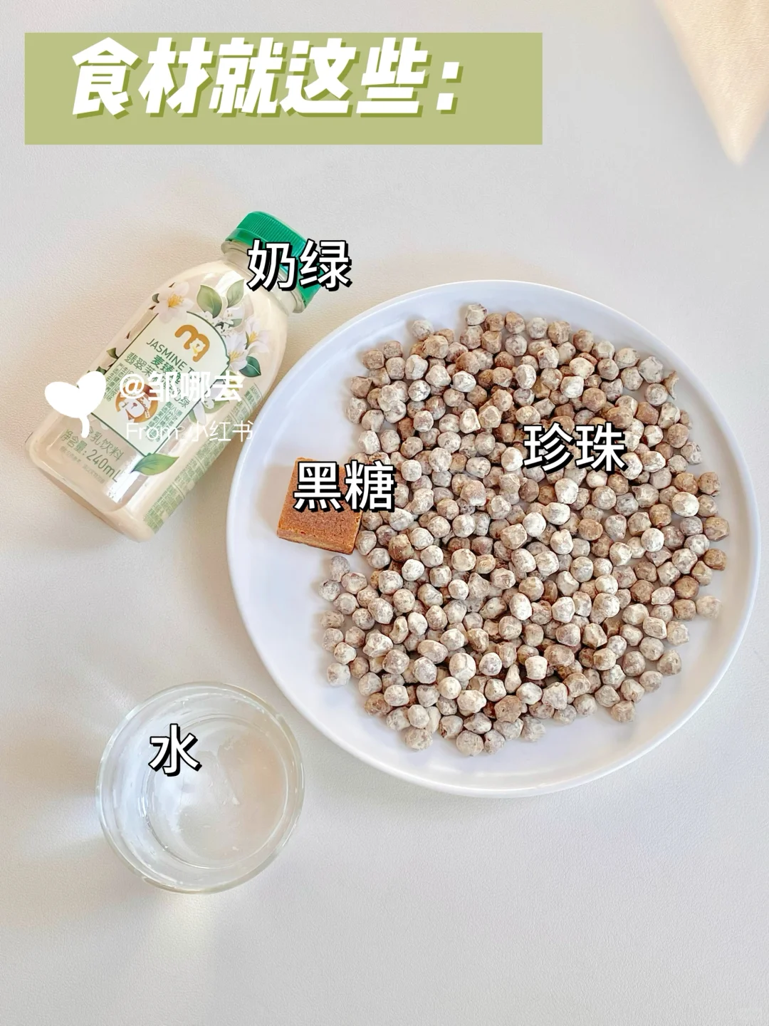 🌈食材:黑糖、珍珠、奶绿