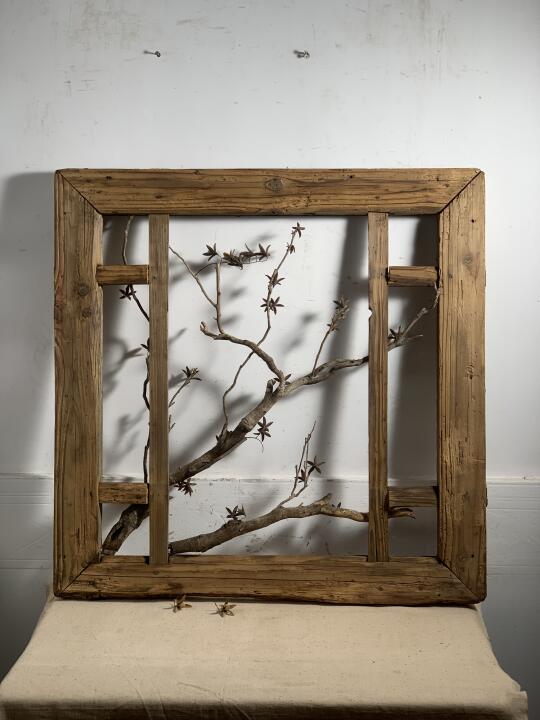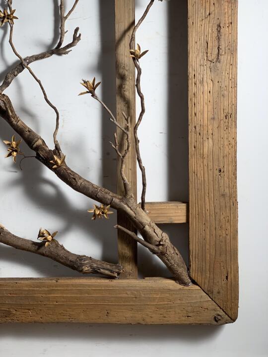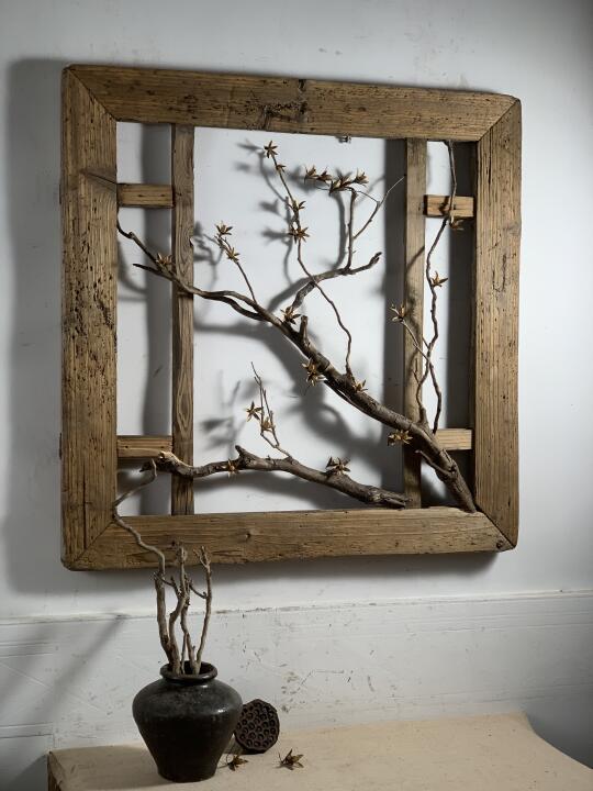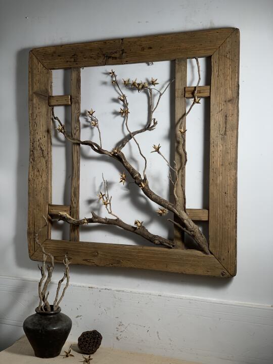 枯木干花屏风;民宿、茶室、书房等极简侘寂摆件壁挂;摄影造景道,86*86*4厘米厚。