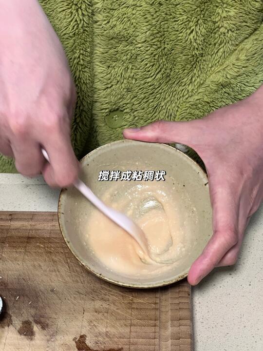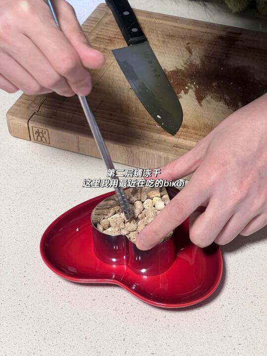 4. 最上面那层牛肉的做法类似牛肉塔塔,一小块牛肉不断切碎即可。