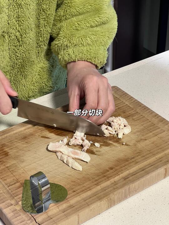 从食物材质和颜色进行区分。同样的水煮鸡肉可以切块+手撕来达到不同的质感。食物颜色达到3种或以上就能有不错的分层效果。
