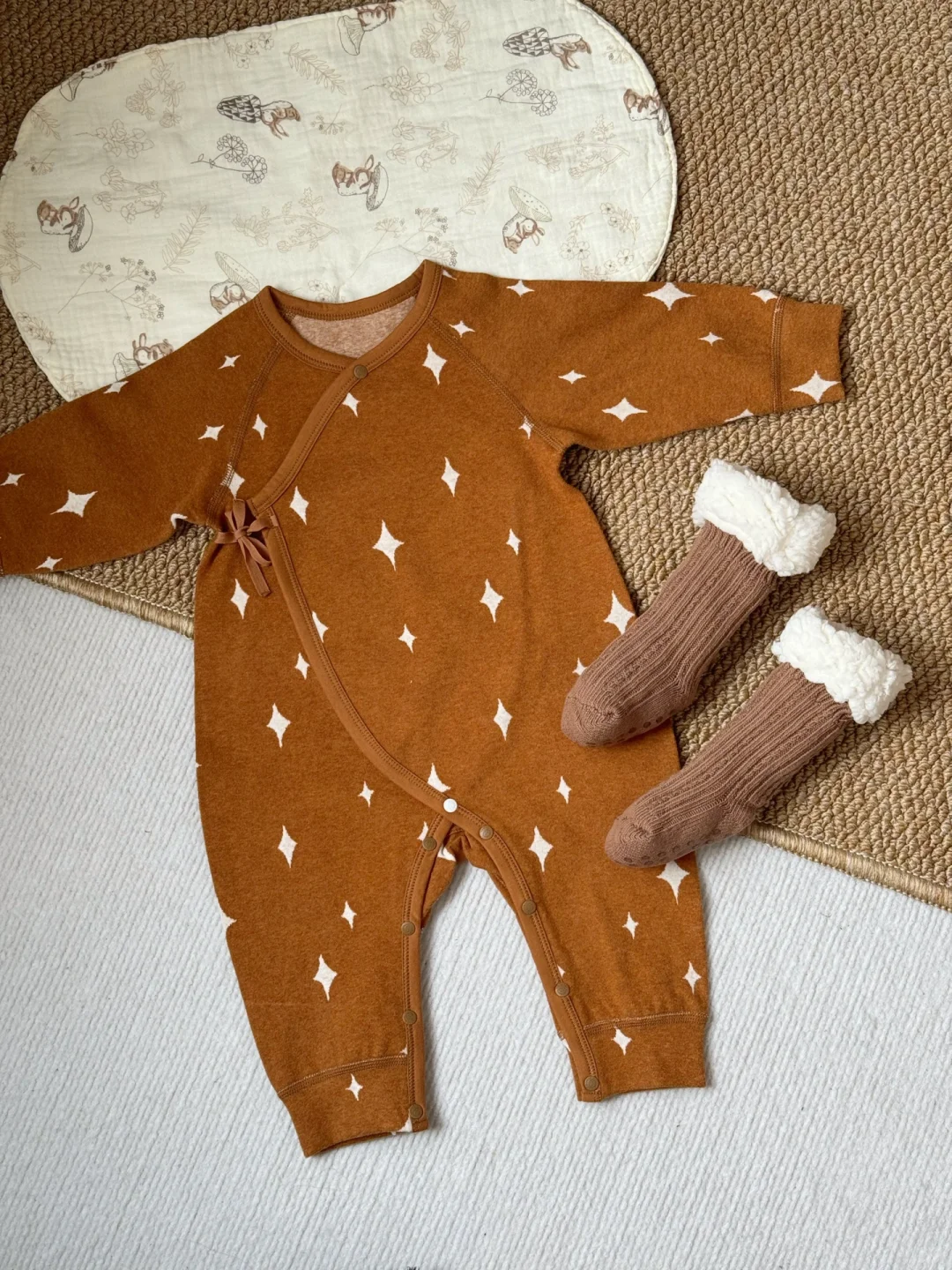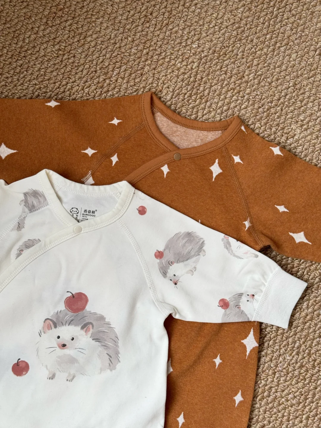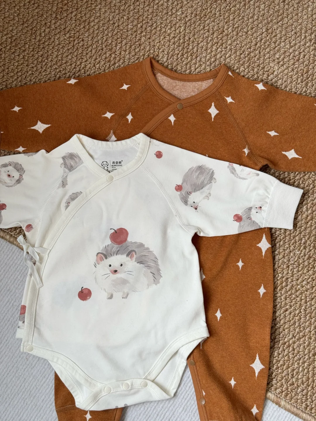 给二月龄的崽添🆕衣服啦 每次刷到可爱的都忍不住放入购物车 身高59目前穿59码正好,备着66码的咯~