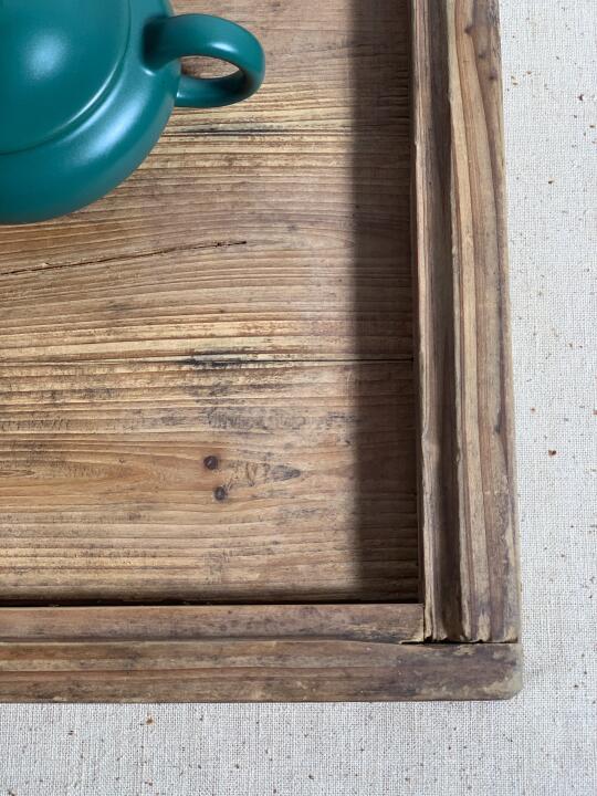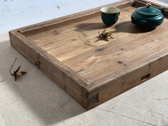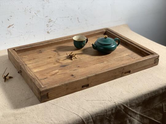 实木茶盘、茶室、民宿极简侘寂用具摆件;卯榫结构,风化纹理佳;50*35*5厘米深。