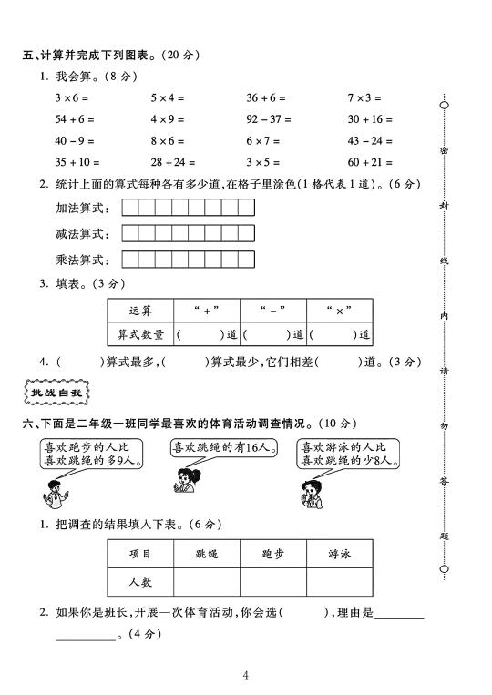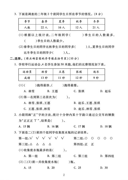 人教版 二年级数学下册 单元测试 第一单元测试卷 电子版可打印 🈶答案