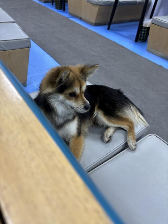 小黑对安静的小孩很友好,但不喜欢张牙舞爪的小孩,另一桌的小孩洗哇乱叫直接伸手抓,被小黑呜呜了。