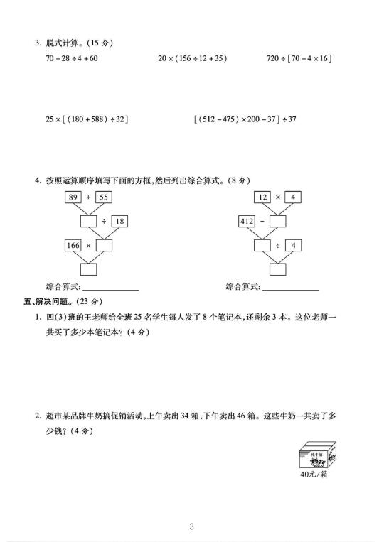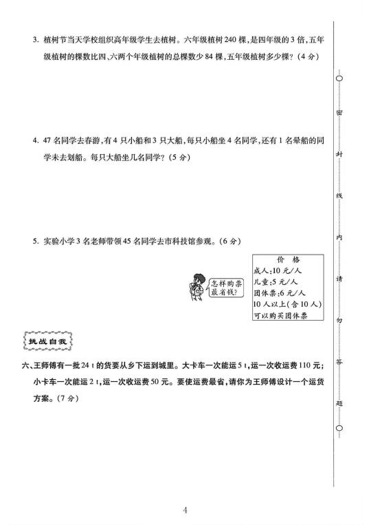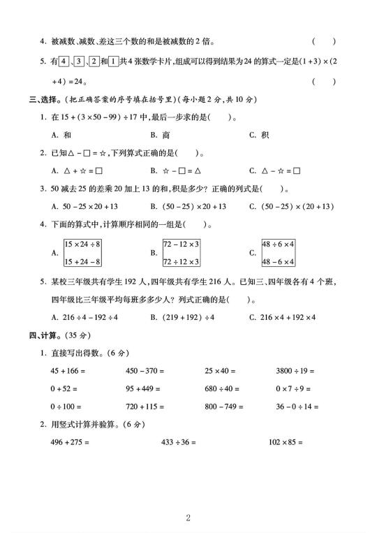 人教版 四年级数学下册 单元测试 第一单元测试卷 电子版可打印 🈶答案