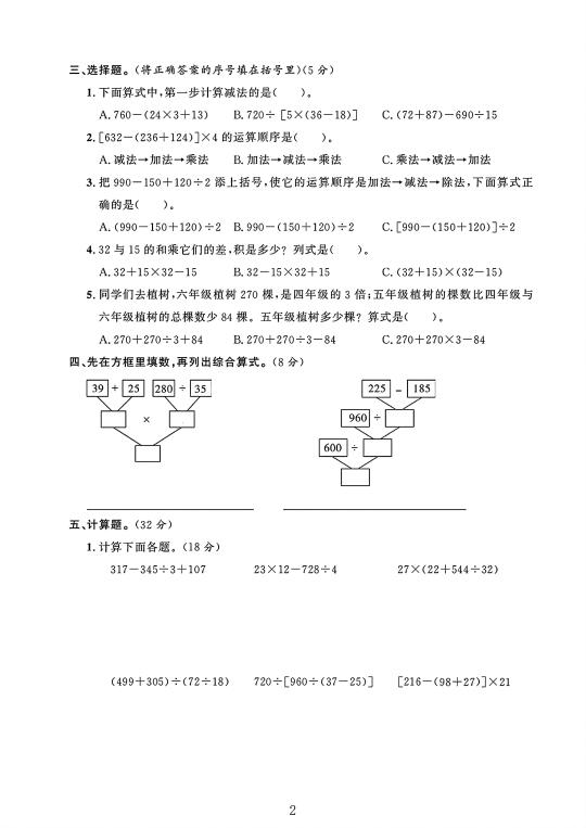 西师版 四年级下册数学 单元测试 第一单元测试卷 电子版可打印 试卷