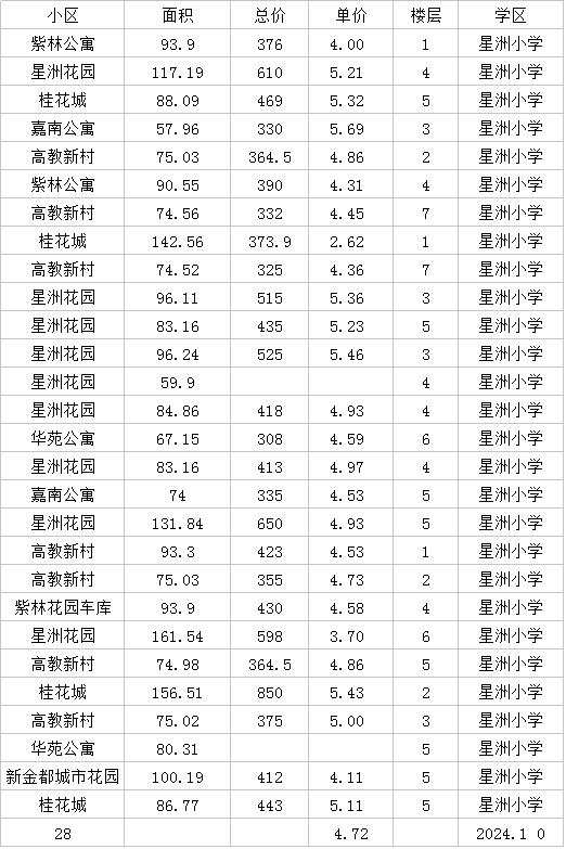 星洲小学价格,24年10月到12月数据
