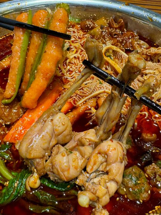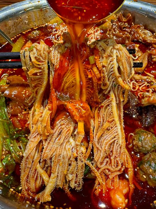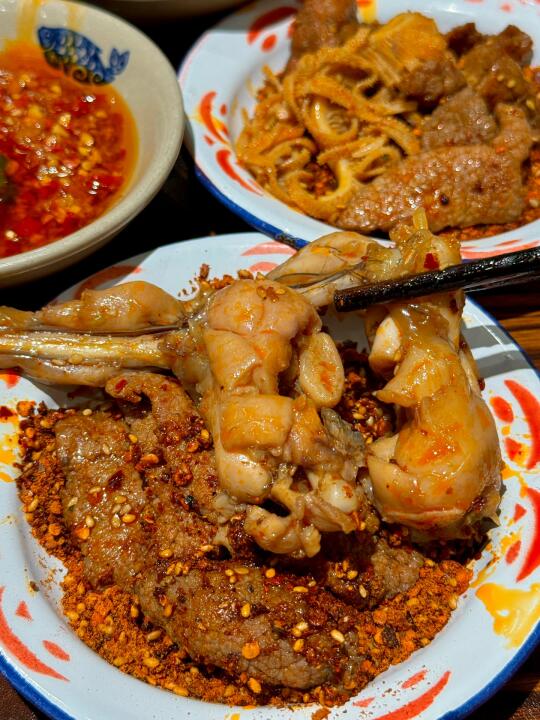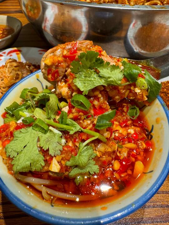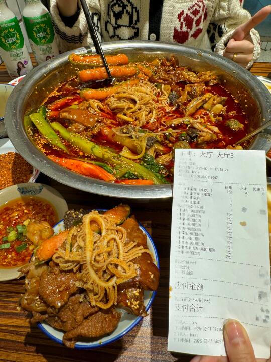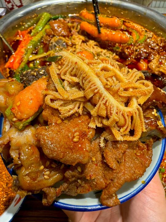 我心目中杭州冒菜No.1!恨不得天天去吃!!! 人均五十就能吃饱吃好!还有绿豆汤可以免费喝! 喜欢吃辣的宝一定要蘸他们家的干碟!! 干辣椒磨成的粉!不是工业辣椒粉!juju香! 推荐菜品:牛蛙、蟹柳、千层、青椒虾滑🫑莴笋癫癫、牛肉🥩卤猪蹄、肥肠!脑花都是去筋去膜单独烫煮的!连米饭用的都是五常大米🍚怒干2碗!!! 我跟朋友错开饭点去吃的!居然店里都坐满了人! 生意也是真的好啊….希望老板多开几家hhhhhh….
