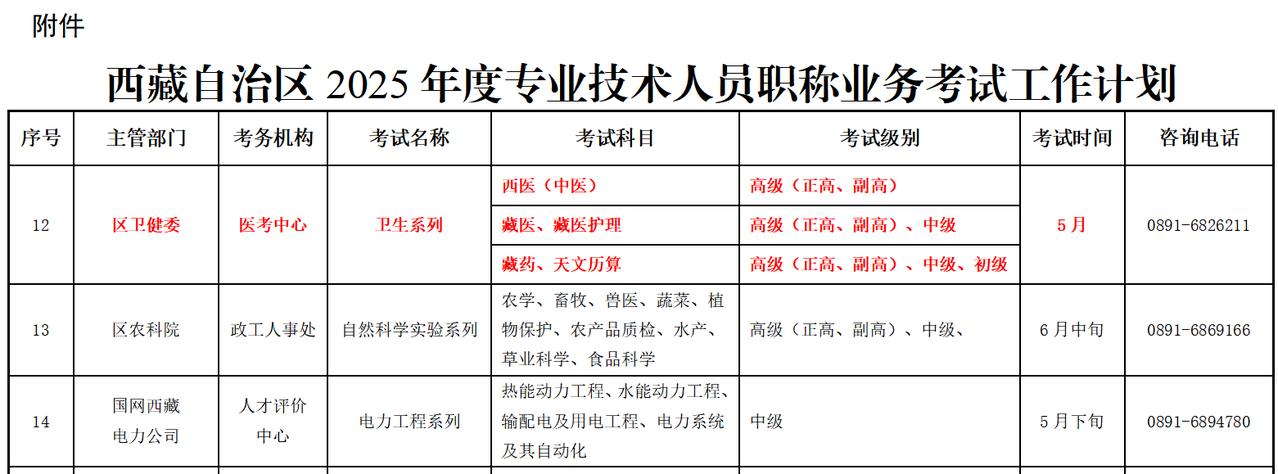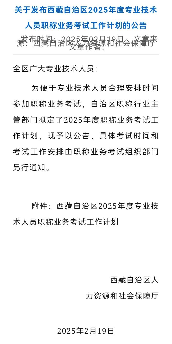 西藏2025年度卫生专业技术人员职称业务考试工作计划已公布,考试时间拟在5月进行! 西藏职称 专业技术人员职称 卫生高级职称考试报名时间 医学职称
