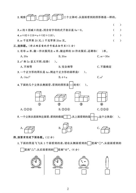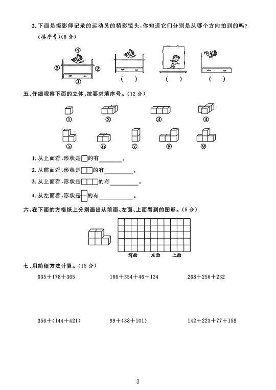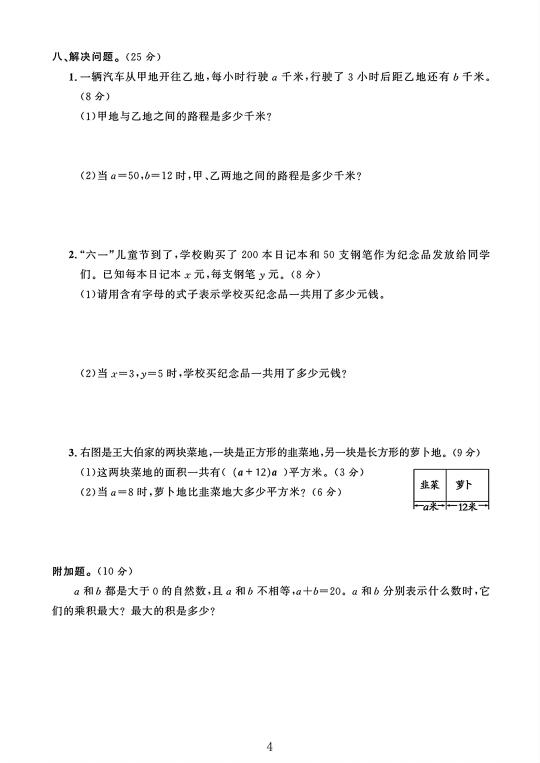 冀教版 四年级下册数学 单元测试 第一单元测试卷 第二单元测试卷 电子版可打印 测试卷