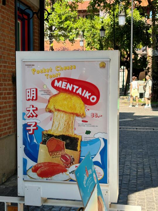 答应我!准备去清迈旅游的姐妹一定要去吃这个 大家请先🌟好!吃了你會感謝我[笑哭R] 去清迈玩了一周回访了好几次的芝士拉丝吐司店 刚好在宁曼路逛街经过看见好多人排队就去试试 一口咬下去咸香酥脆!🧀是巨香巨好吃的还拉丝呢 吐司趁热吃真的绝!芝士脑袋必冲鸭[哭惹R] 我们点了原味、双重芝士、明太子和巧克力口味 全都hin好吃啊啊完全不踩雷!我个人偏爱明太子口味~ 這家店面就在宁曼路的📍The Volcano🍞