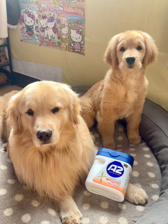 过年的时候接回来了我们ok的大儿子O耶,小小的一只和我们ok小时候真的太像了,现在越长真的要一模一样了 因为小耶两个月就接回来了,所以营养真的要补充起来,我就给它安排了ok小时候都在喝的MAG羊奶粉,现在三个月已经28斤的大小伙子了,每天出去又蹦又跳的,特别健康! 这款A2羊奶粉是婴儿级的,羊奶含量高达99%,零乳糖的配方,也不用担心小崽子的肠胃,ok也能一起喝~还添加了乳铁蛋白,身体素质👍👍👍 以后家里就不是一辆小卡车了是两辆咯