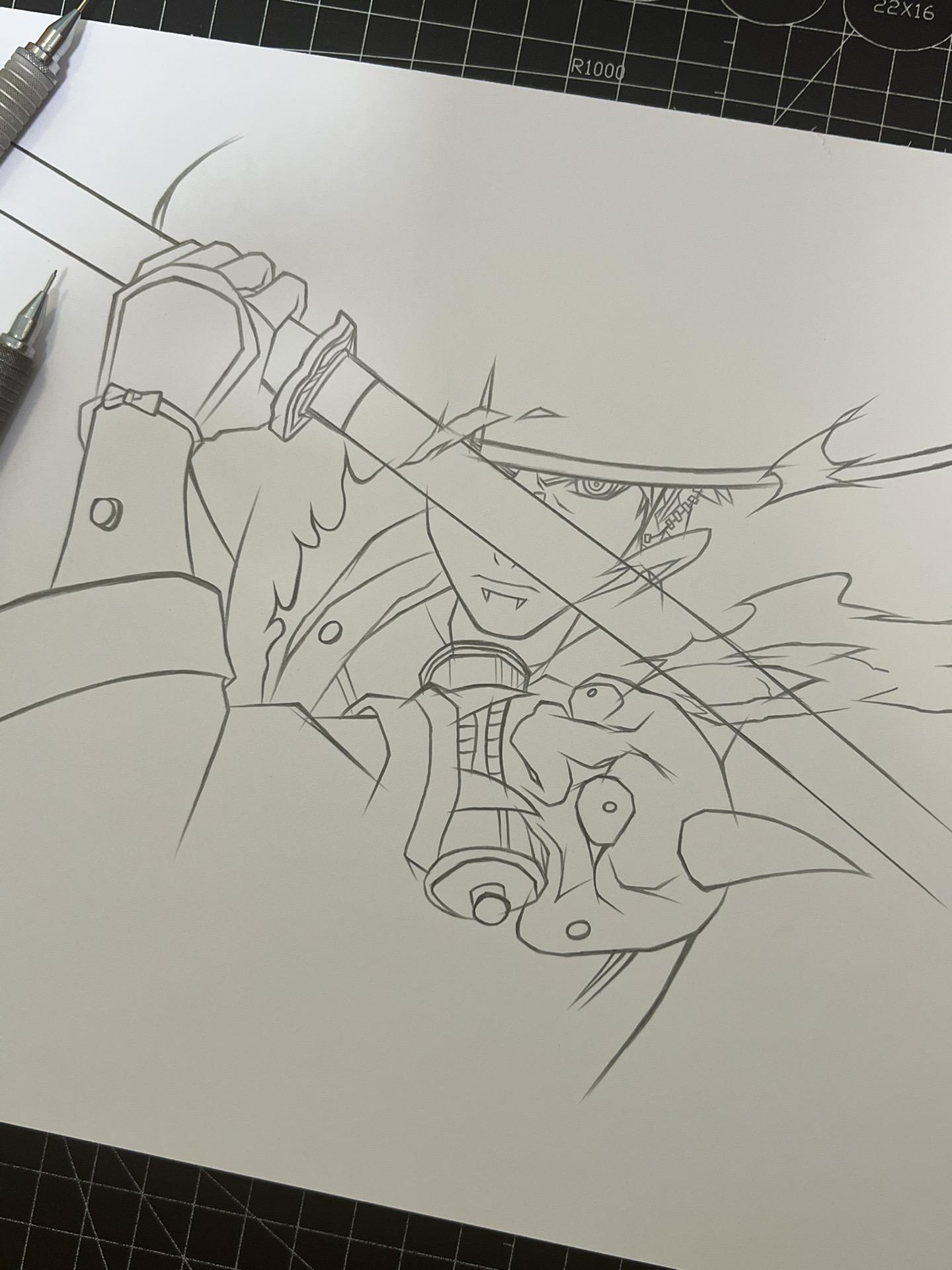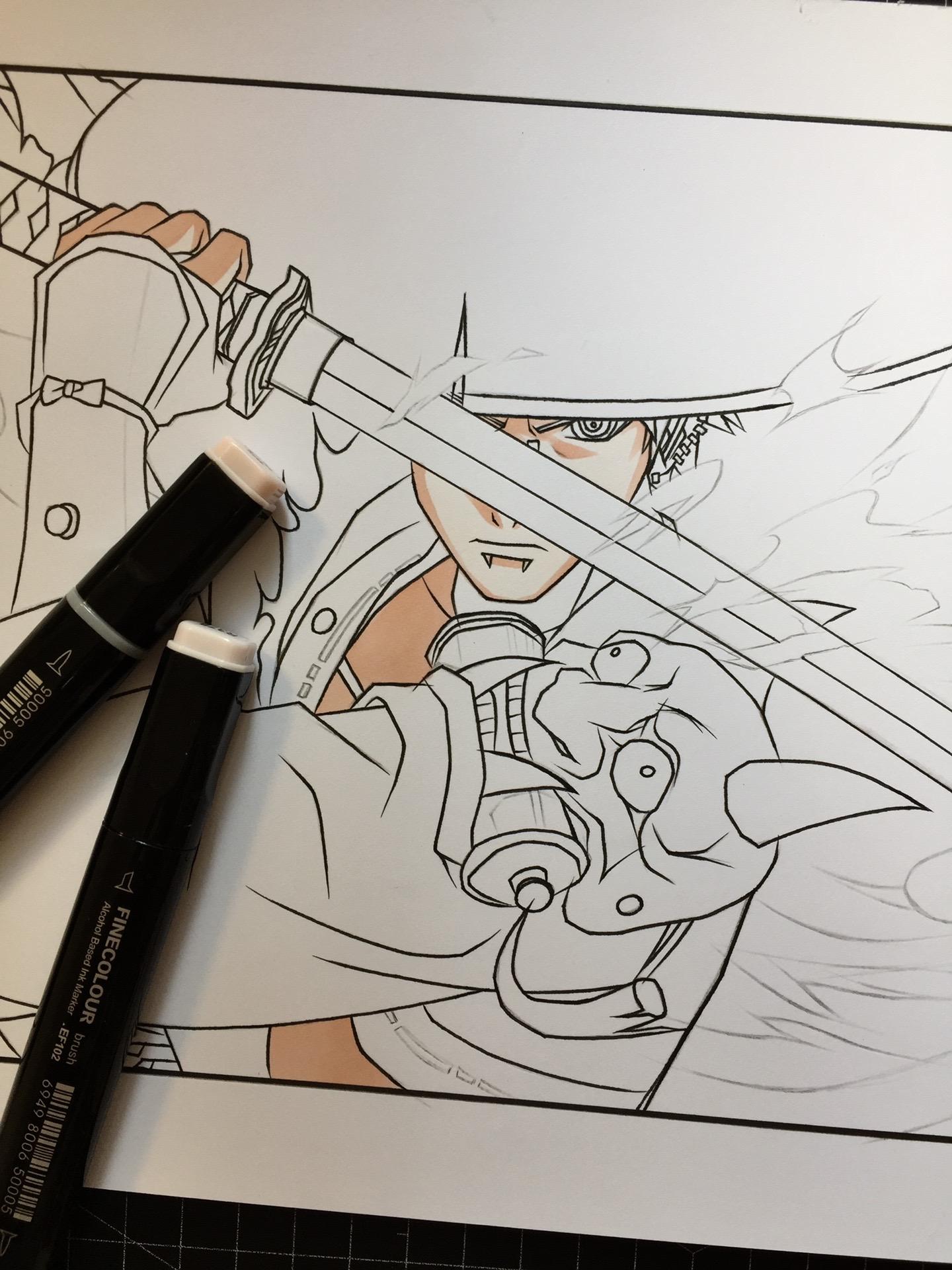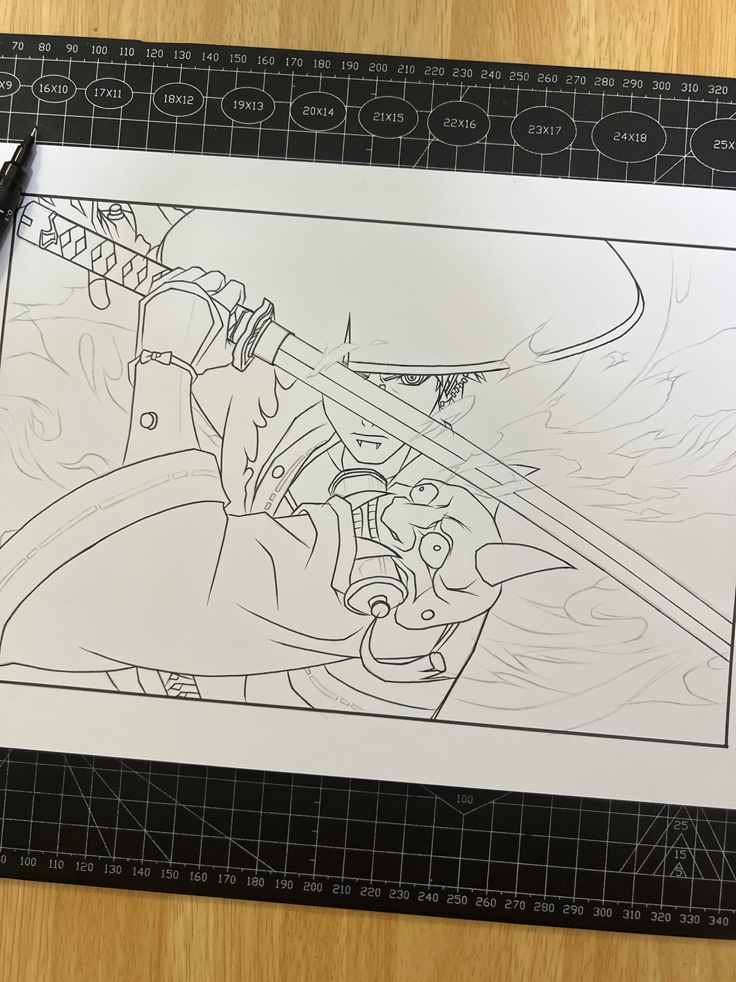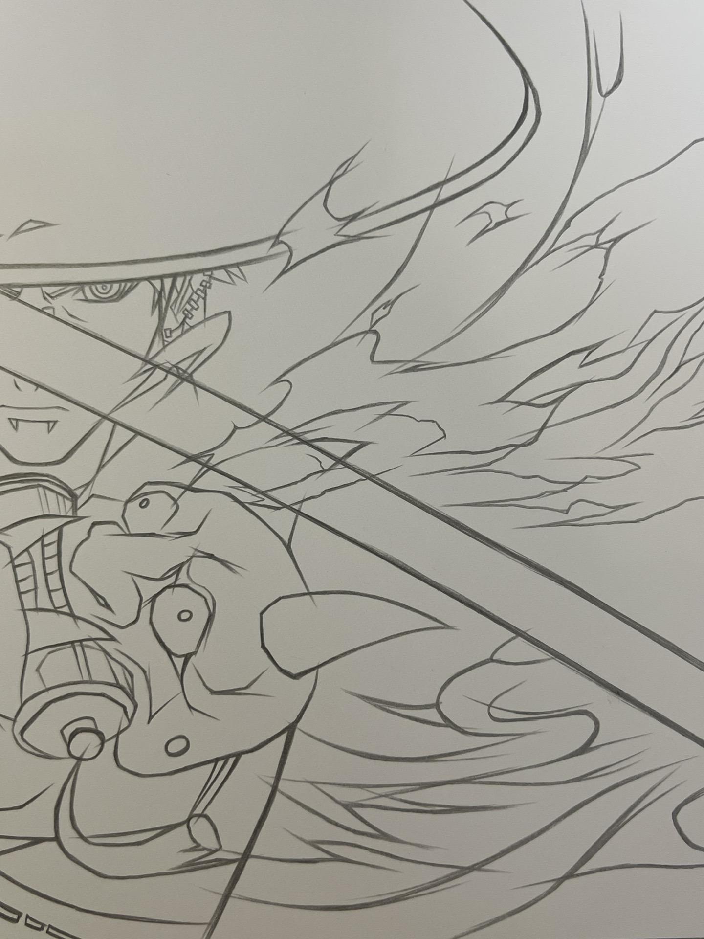 漂泊佩恩—手绘过程。纸有点受潮了,不太吸收墨水。画的不太仔细到后面没什么耐心了,凑合着看吧。😷
