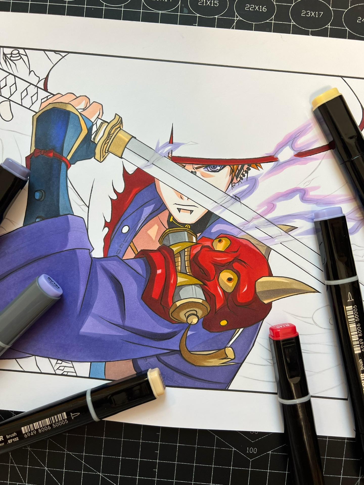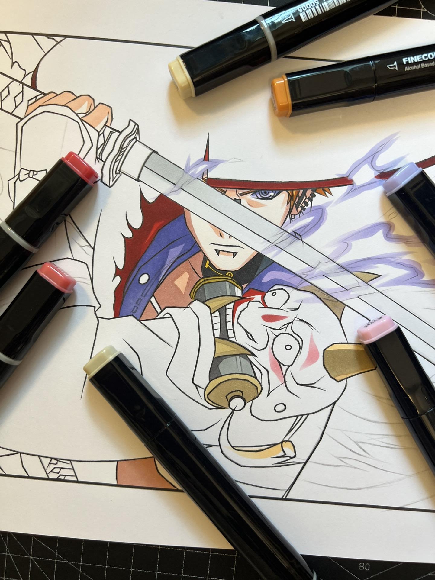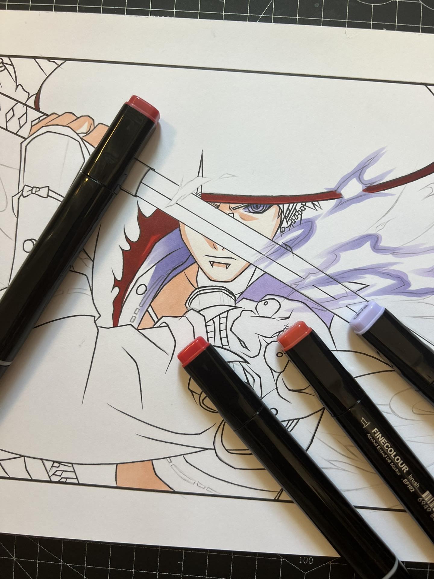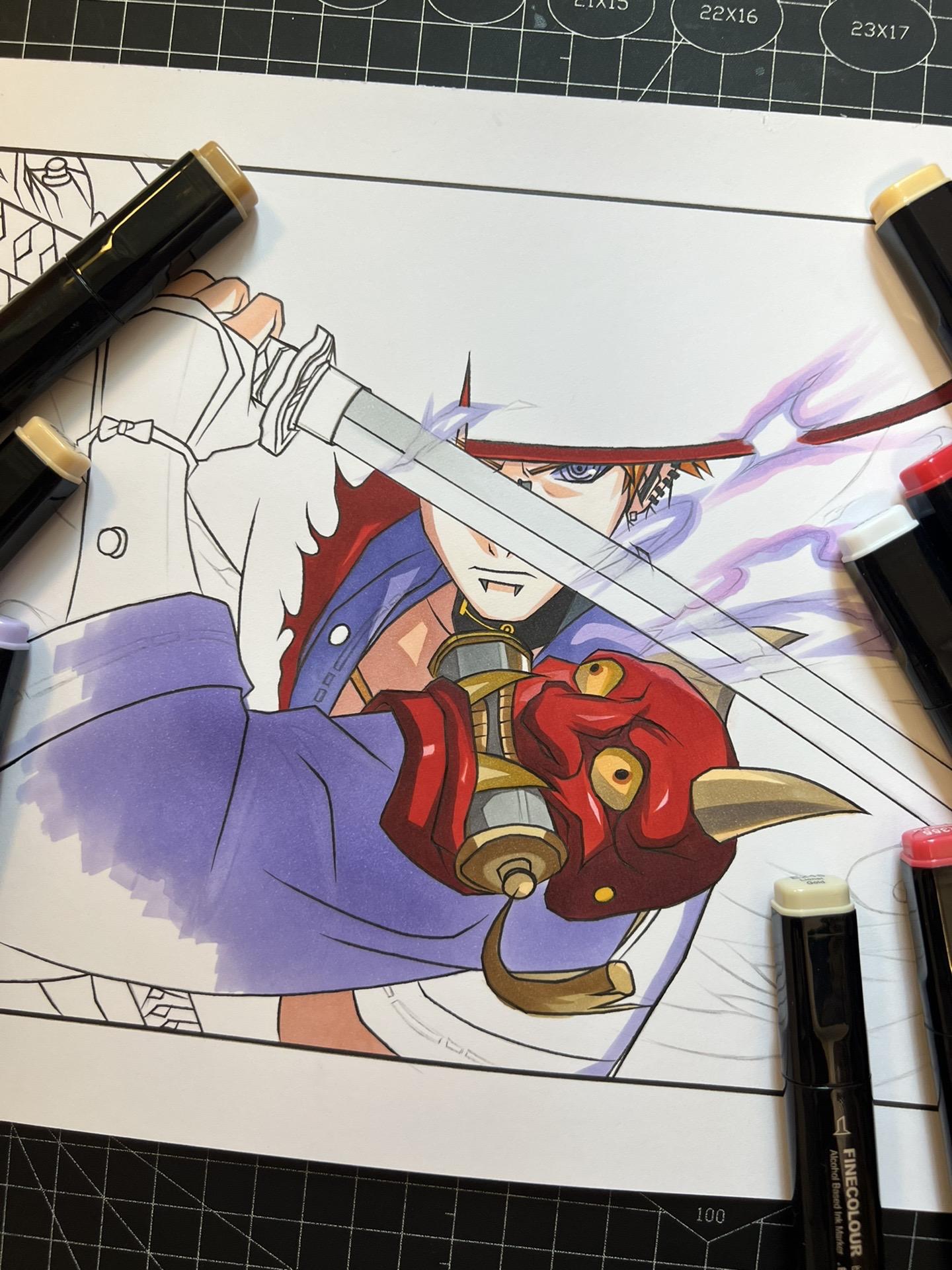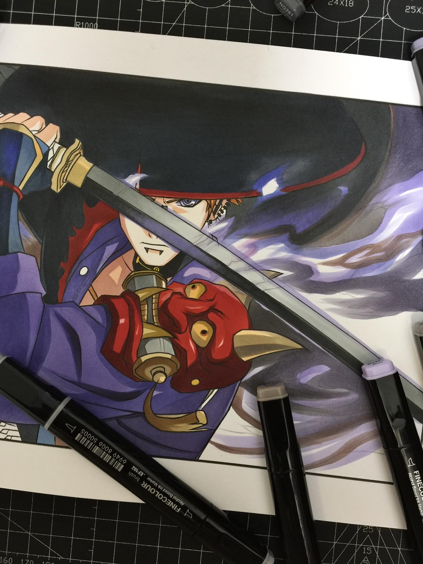 漂泊佩恩—手绘过程。纸有点受潮了,不太吸收墨水。画的不太仔细到后面没什么耐心了,凑合着看吧。😷