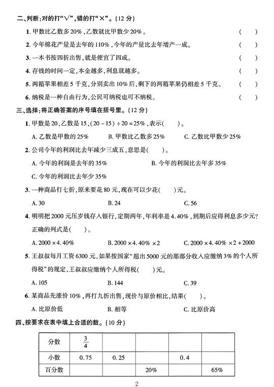 青岛版数学 六年级下册数学 第一单元测试卷 单元测试 电子版可打印