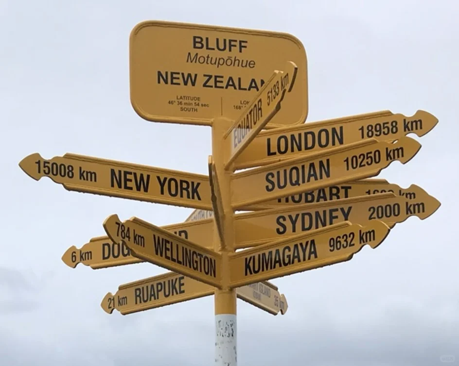 新西兰布拉夫小镇的里程牌,有个宿迁