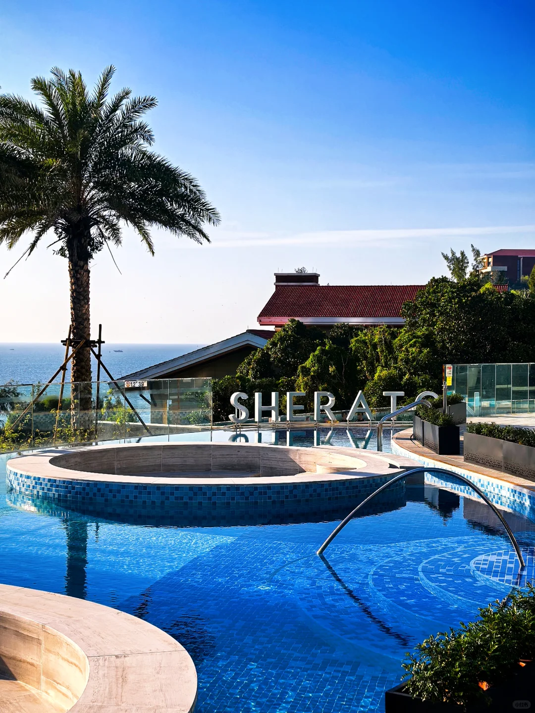 酒店虽然在海边,但是其实离沙滩有段距离,要往下走十分钟左右,从去年年中开始沙滩上“sheraton”的标志就被拆除了,很可惜。