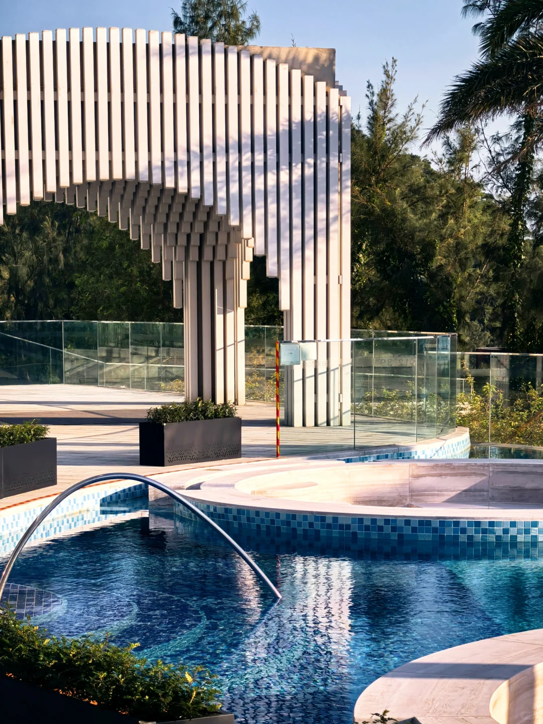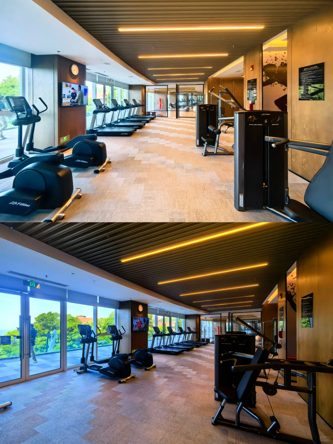 酒店不大,除了大堂吧公区就只有一个成人+儿童连起来的无边泳池及健身房。其中无边泳池下沉式岛台借鉴了苏梅岛W和三亚山海天傲途格的设计,虽然拍照也很漂亮,但是实际质感差很多。另外健身房可以直接看海,全套力健进口设备。