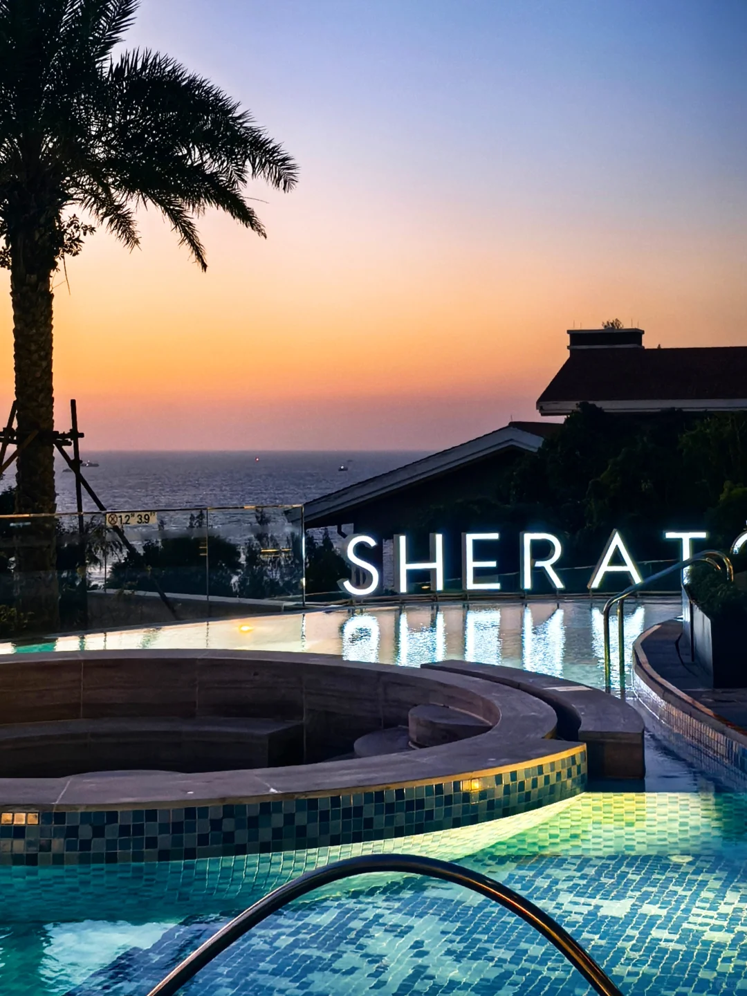 这家位置在北海最美日落点冠头岭,好处是海景真的绝美,尤其是日落时分的橘子海尤其浪漫。缺点就是交通不方便,而且下面是小区,沙滩也不是酒店独享谈不上私密,不过话说回来,北海就没有私密的度假酒店,而且喜来登住客有专属地下车库免费停车。