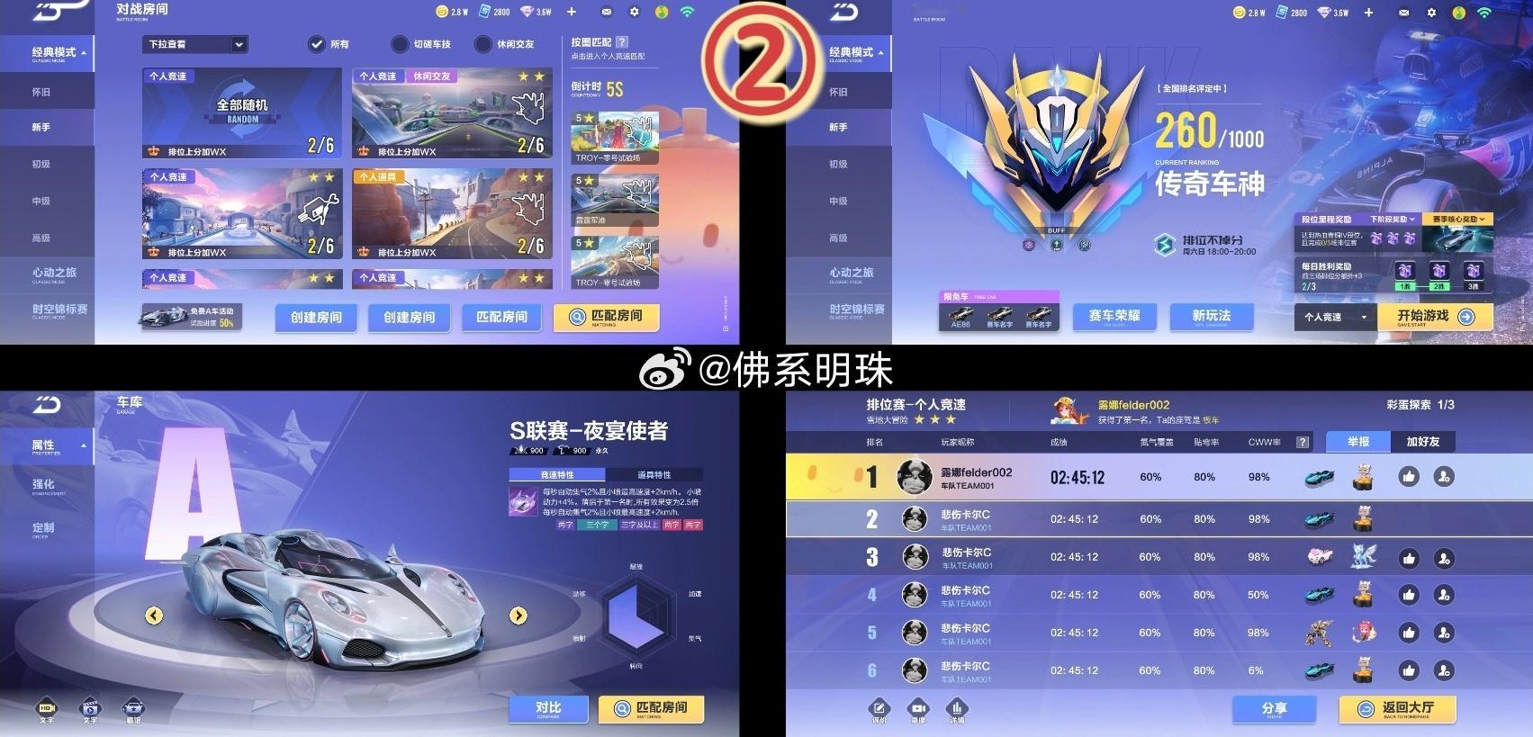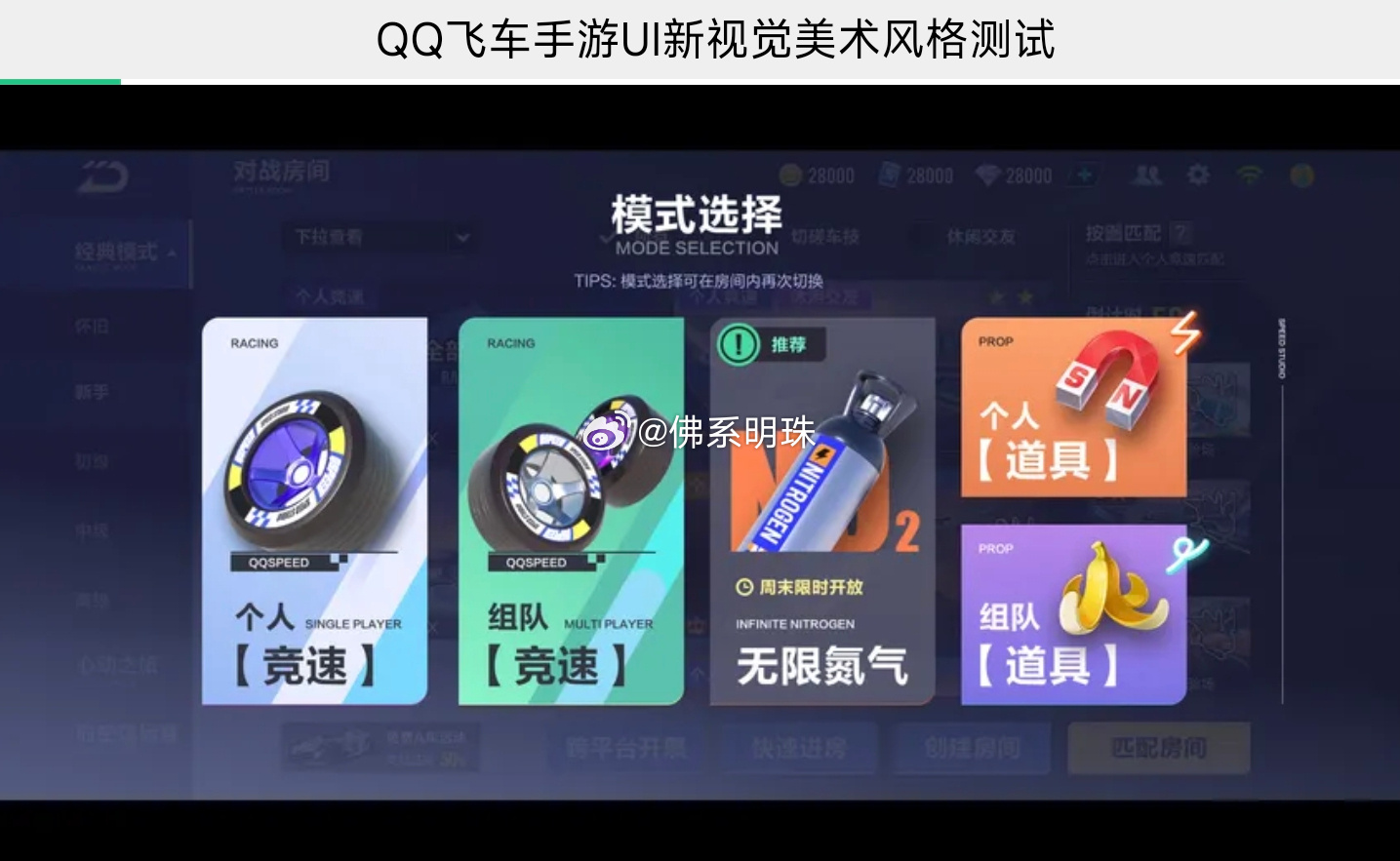 新UI视觉美术风格测试。有3套界面设计,包括车神图标、大厅按钮布局等,主要区别在
