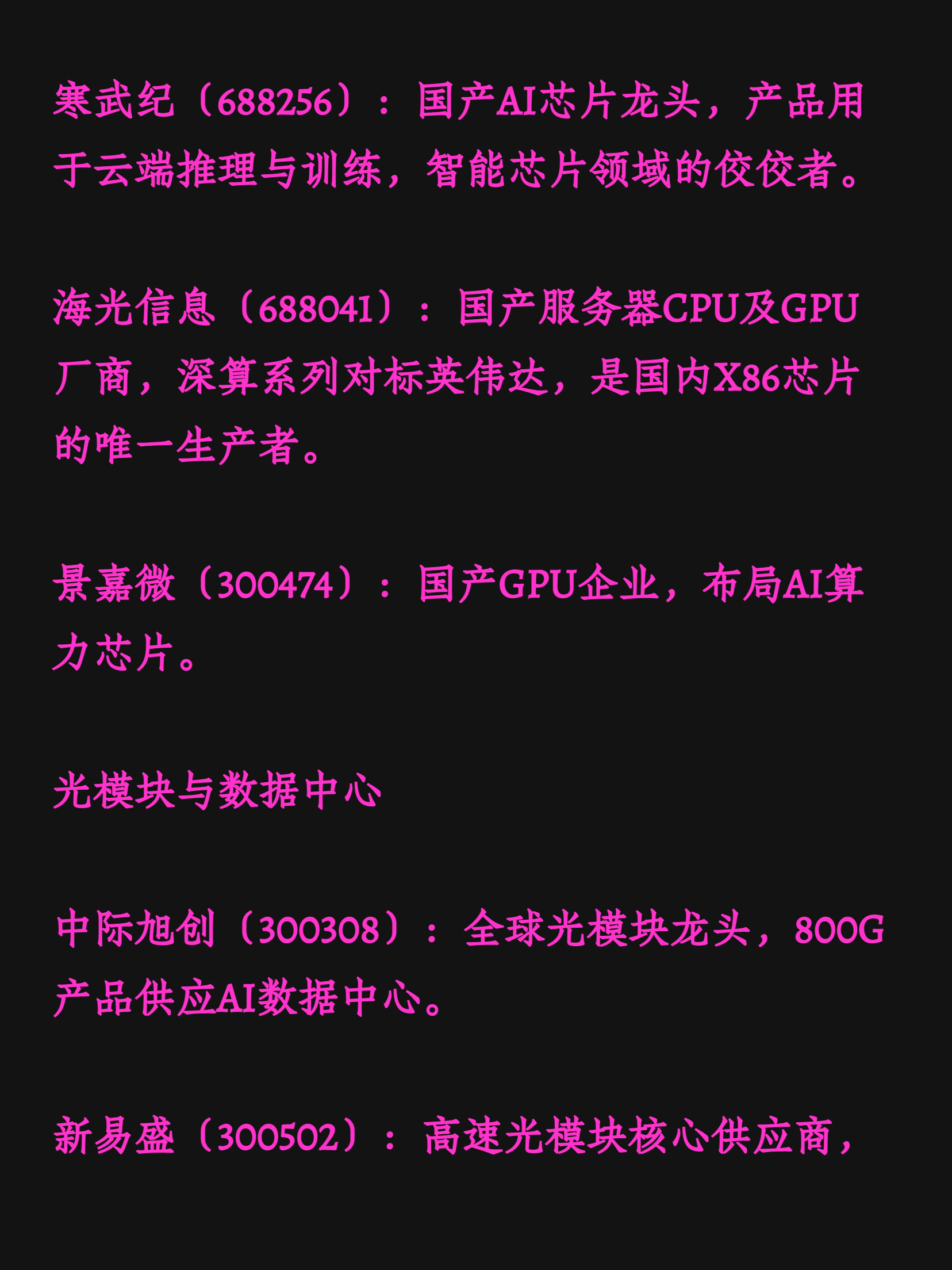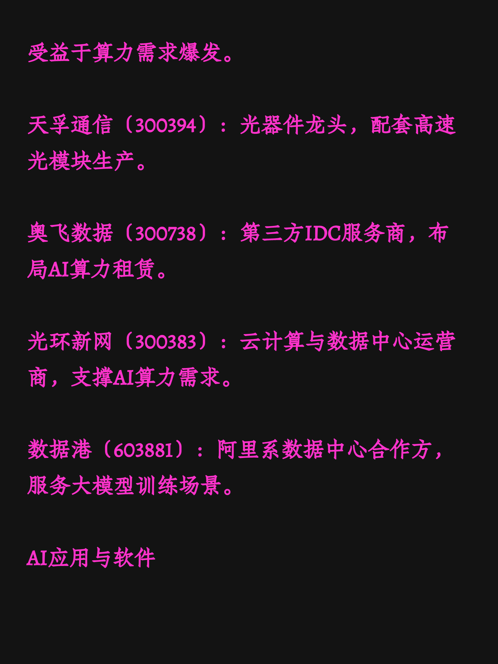 算力基础设施(AI大模型底层支撑)相关龙头。 #光模块与数据中心 #ai应用与软件 #服务器 #算力 #中国软件