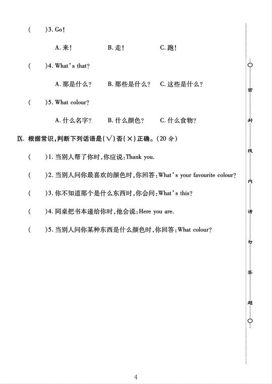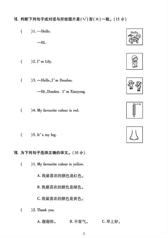 外研版 三年级下册英语 单元测试 第一单元测试卷 电子版可打印