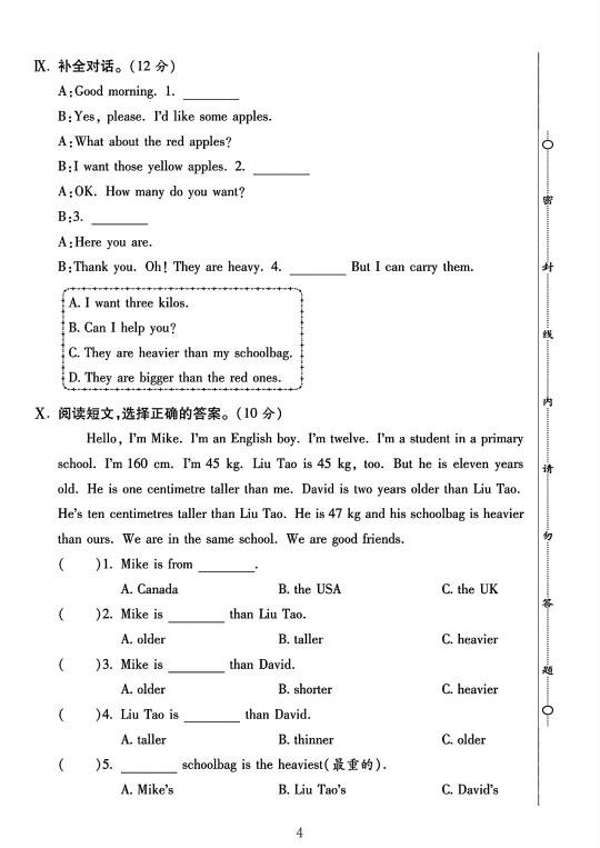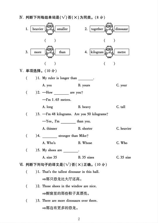 人教版 六年级下册英语 第一单元测试卷 单元测试 电子版可打印