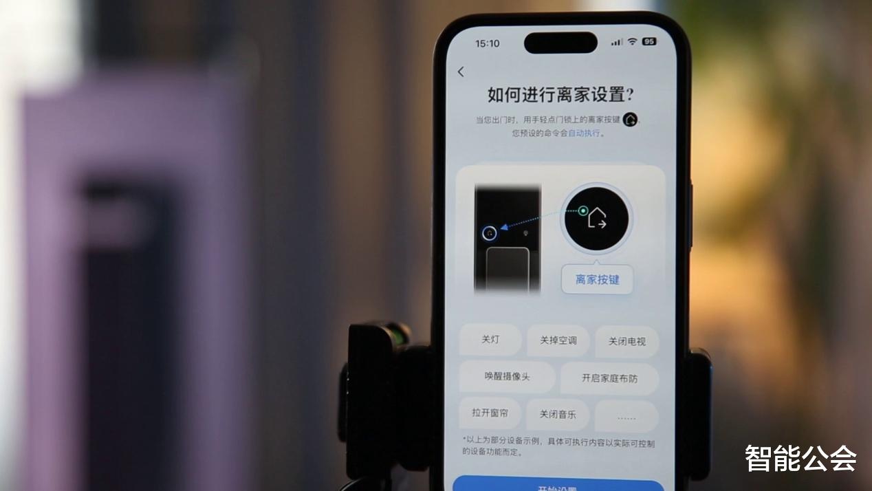 离家场景:一键离家模式,全屋灯光、非必要电器自动断电,扫地机器人开始工作,安防系统布防。一切井然有序,安心离家。