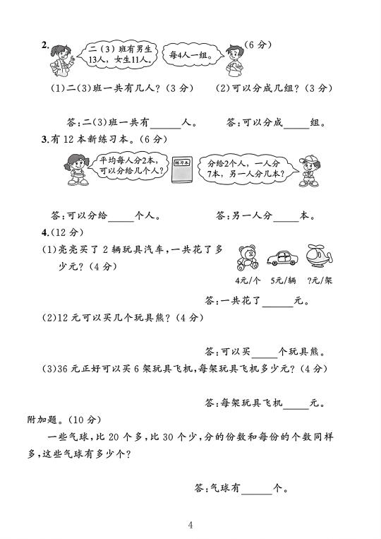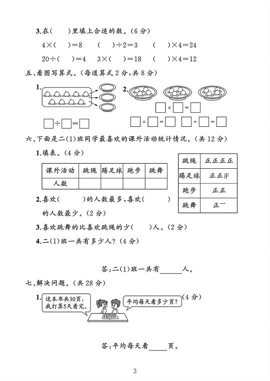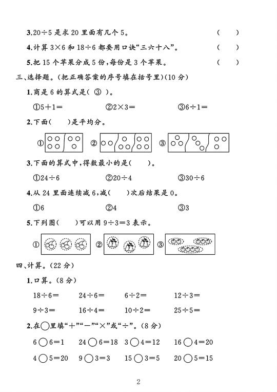 人教版二年级数学下册第1-2单元素养评估卷《月考一》
