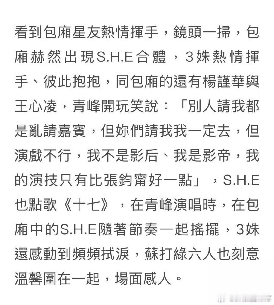 SHE王心凌杨谨华现身苏打绿演唱会 SHE王心凌去了苏打绿演唱会 我的青春回来了!SHE、王心凌杨谨华现身苏打绿演唱会,太好哭了。