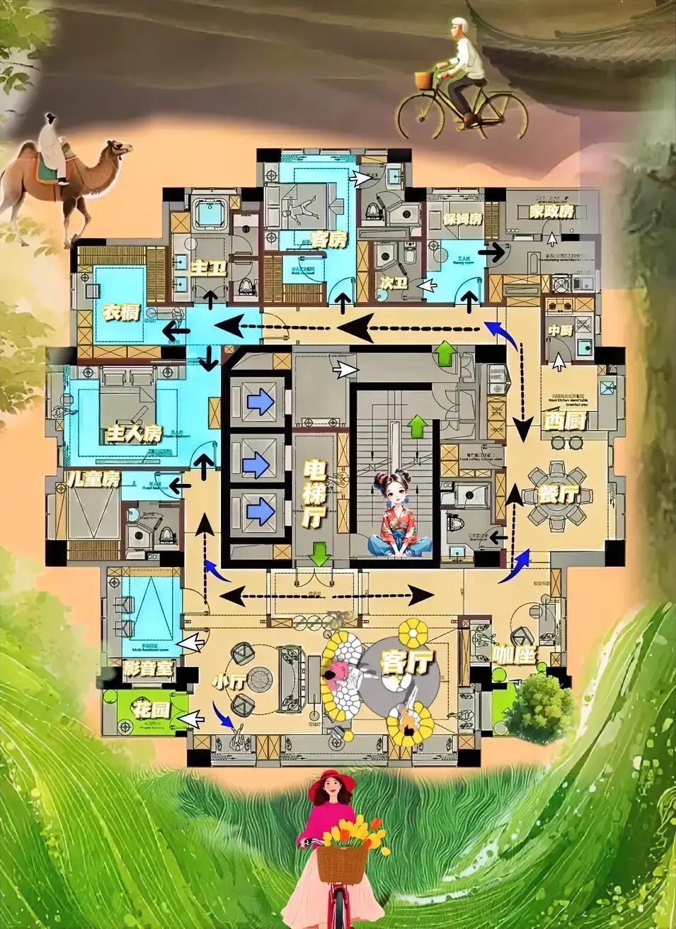 不管怎样看,五居室活得精彩,五厕所。懂得用动线语言给自己赋能,最理性的跑道房,没有美术走廊加持,也是用行动改写结局。