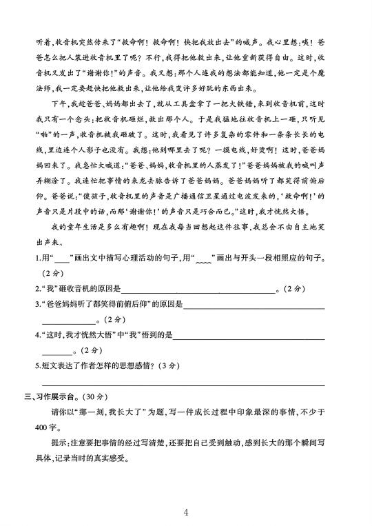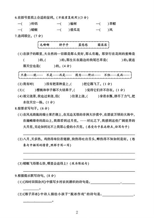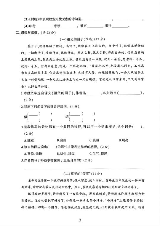 人教版五年级下册语文 单元测试 第一单元测试卷 电子版可打印 测试卷