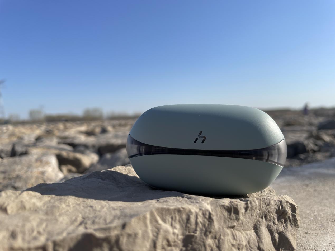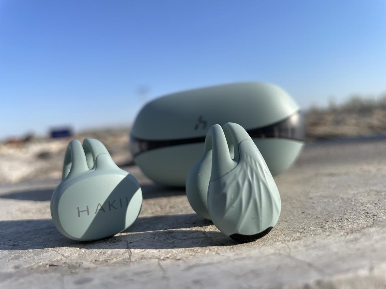 取出耳机和充电仓,你会发现它们的外观同样令人惊艳。Hakii LINK采用了独特的仿生纹理设计,灵感来源于自然界的灵动元素,使得耳机整体看起来既时尚又富有动感。充电仓小巧圆润,手感舒适,便于携带。而耳机本身则采用了双环臂设计,由高性能镍钛合金打造,确保了佩戴的稳定性和耐用性。
